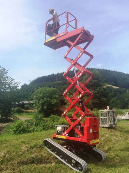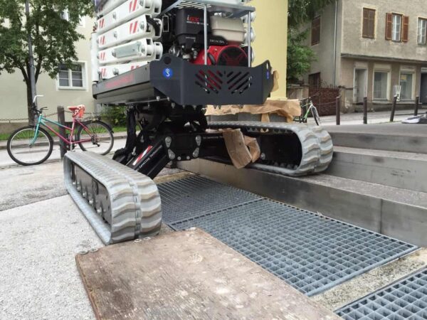Pudiéndose destacar la posibilidad de superar cualquier tipo de pendiente hasta 20º en sentido longitudinal y 15º en sentido lateral, versatilidad de uso gracias a su pequeño tamaño y capacidad de traslación hasta 6m de altura de trabajo sin necesidad de volver a la posición de recuperación.