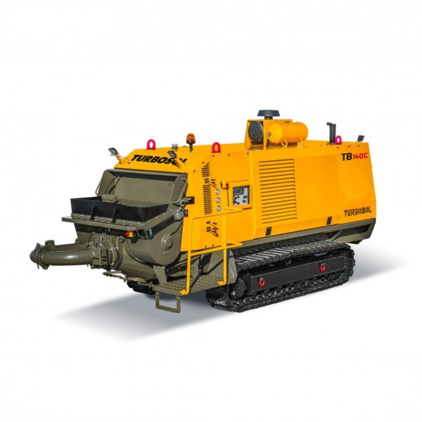 Es la nueva bomba de hormigón con orugas, muy fácil de utilizar en cualquier tipo de obra, en especial cuando se necesitan realizar gran cantidad de desplazamientos. Es el instrumento ideal para la realización de pilotes junto con las triveladoras. Gracias a la nueva tecnología, TB-140C es capaz de transportar también hormigón y aplicar gunitado. Su diseño compacto permite reducir al mínimo el espacio necesario para el desplazamiento y la instalación de la misma en la obra. Especialmente indicada para trabajar en condiciones extremas, en áreas subterráneas y de difícil acceso. Se puede manejar fácilmente gracias al mando a distancia.